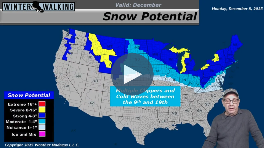 Meteorologist Henry Margusity reports a significant shift in the weather pattern beginning December 8, 2025, characterized as a "Clipper Parade" that will send multiple fast-moving storm systems from the Midwest into the Northeast over the coming weeks. The current disturbance is already producing snow across parts of Virginia, West Virginia, and Kentucky, while a new clipper system is set to track through the Great Lakes. This pattern is ushering in a deep freeze, with a very cold air mass expected to lock into place and fuel continuous winter weather for the northern tier of the country. The[…]